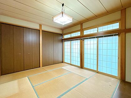 【現況販売】北東側約8畳和室です。北東側のお部屋ですが、日差しを遮る建物が無く温かい空間となっております。また、東側の窓からはお庭を見渡すことができます。