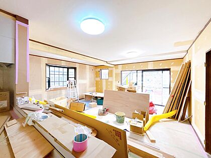 【リフォーム中】LDKは、天井と壁のクロスを張り替え、床は永大産業製のフローリングに張り替えます。汚れが拭き取りやすく傷もつきにくい素材なので、お掃除もラクラクです。