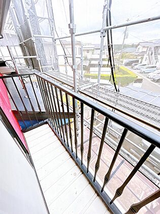 【リフォーム中】塗装、点検を行います。南向きのベランダなのでお洗濯物も乾きやすいですね。屋根があるため雨の日や雪の日もお洗濯物が干せます。