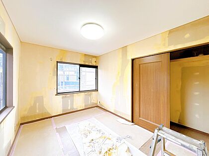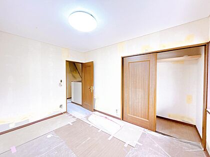 【リフォーム中】2階南西側の洋室です。床はフロアタイル貼り、天井壁のクロスは張替え、LED照明に交換予定です。WICがあるため夫婦の寝室にいかがですか。