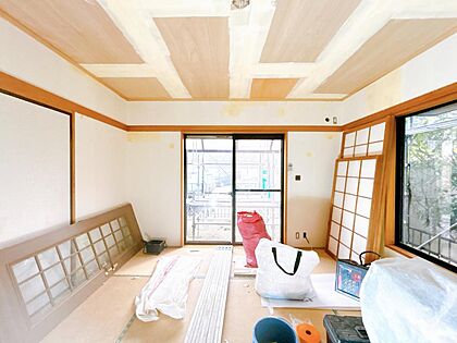 【リフォーム中】続き間の和室です。畳は表替え、ふすま障子は張り替えます。い草の香りに癒される、居心地の良いお部屋に仕上がります。
