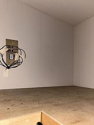 【リフォーム中】2階廊下の納戸です。壁のクロス張替、天井の塗装、照明の新品交換、床はフローリング張りを行います。