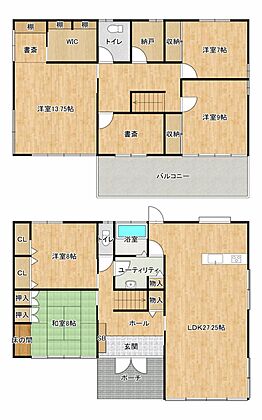 【間取】6SLDKの間取です。2つの和室を洋室に変更するので使い勝手のいい間取になりますね。