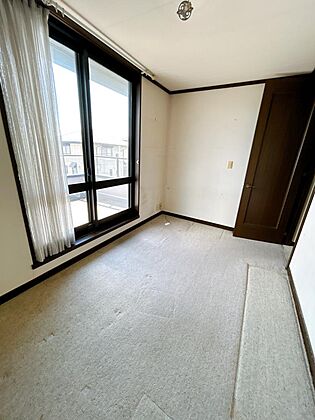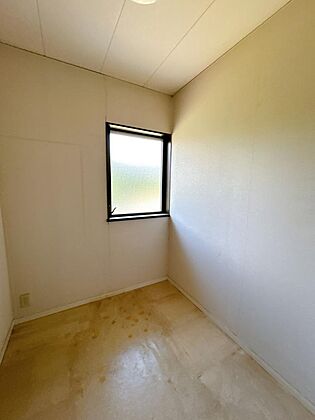 【リフォーム中】2階中央南側5帖洋室です。壁のクロス張替、天井の塗装、照明の新品交換、床はフローリング張りを行います。