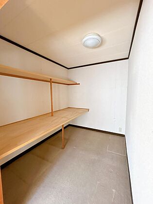 【リフォーム中】2階12.5帖和室から入る納戸はウォークインクローゼットに変更します。壁、天井のクロス張替、照明の新品交換、床はフローリング張りを行います。既存の棚は撤去し北面に新しく棚とポールを設置