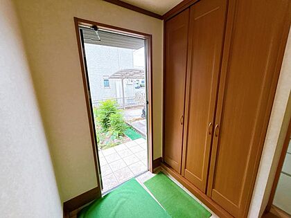 【リフォーム中】玄関の写真です。大きなシューズボックスでたくさん収納することができます。