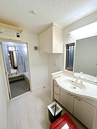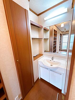 【リフォーム中】2階洗面台の写真です。クリーニング予定です。観賞用のものから清掃用などの小物まで幅広く収納することができます。