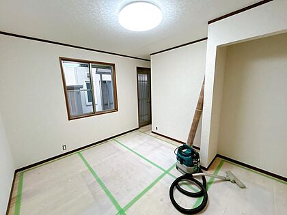 【リフォーム中】2階リビング別アングルです。クロスの張替えを行います。日当たりが良好で通りがかる方の目線も気になりませんね。