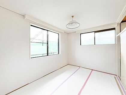 【内外装リフォーム中10/18更新】二階洋室のお写真です。南側に位置しているお部屋で2面採光なので、日照時間が長くていいですね。フローリング重ね張り、天井壁クロス貼り替え、照明交換、他。