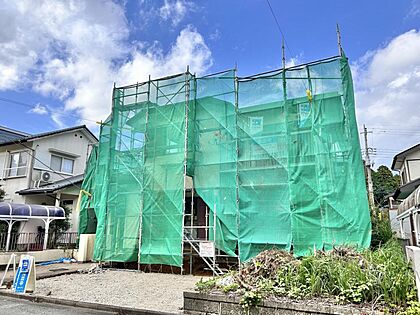 【内外装リフォーム中10/18更新】現地外観別角度の写真です。隣地との間に充分な空間がありますのでおうちの背景に青空も映えますね。外壁塗装、屋根塗装、駐車スペース拡張、庭木伐採、砕石敷き込み。