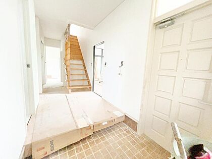 【内外装リフォーム中10/18更新】玄関を撮影しました。玄関は南側を向いているので、日中は十分日光が差し込みます。玄関が明るいと気分も晴れますね。