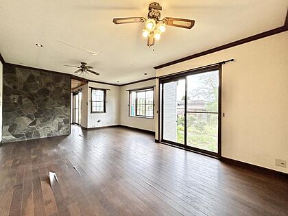 【内外装リフォーム中10/26更新】一階リビングのお写真です。ダイニングと合わせると、合計約26.13帖のLDKになります。広々とゆったりおくつろぎいただけますね。天井壁クロス貼り替え、フローリング張