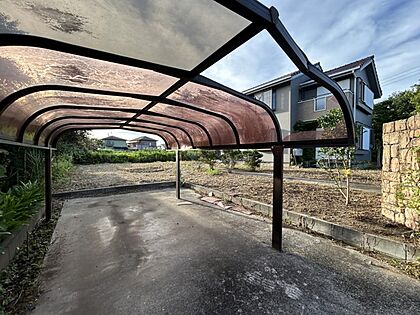 【内外装リフォーム中10/26更新】駐車場写真を撮影しました。駐車場は縦列2台と横付け1台と合計3台、可能です。間口が広く、幅員約4mなので安心して駐車いただけます。