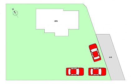 【区画図】敷地約151坪です。駐車は縦列2台可能です。駐車場の裏にはお庭もございますので、家庭菜園やドッグランなどにもよさそうですね.