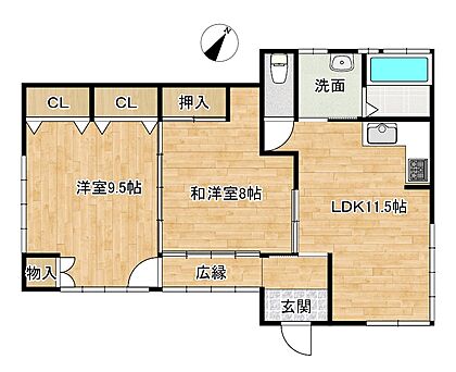 【間取り図】間取りは2LDKの平家建てです。水回り新品交換、クロス張り替え、フローリング重ね張り、照明交換、火災報知器設置、ドアホン交換、他。