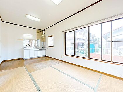 【リフォーム中10/27更新】リビングの様子です。約11.5帖のLDKです。窓からの陽光が心地よいので、家族団欒にぴったりの空間です。天井壁クロス貼り替え、クッションフロア張替、照明交換、他。