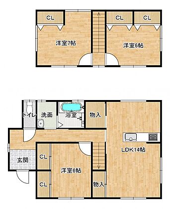 【間取図】全居室6帖以上の3LDKの間取りに仕上がる予定です。すべてのお部屋にある収納を活用すれば、お部屋を有効に使っていただけます。