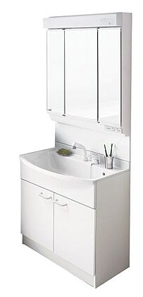 【同仕様画像】洗面化粧台は三面鏡タイプを採用しました。三方向から身だしなみを確かめられるので、朝の支度もしやすいですね。