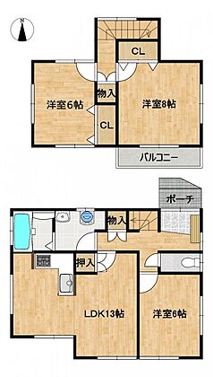 【間取り図】2階建ての3LDKへ間取変更を行います。また全居室6帖以上あり、洗面所や浴室も1坪に拡張を行うので、ゆとりを持った生活ができます。