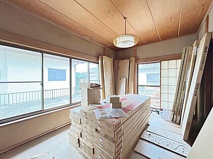 【リフォーム中写真10/26更新】2階の6帖の洋室です。三方向に窓があるので陽当たりの良いお部屋です。床はフローリングの重ね張りを行います。