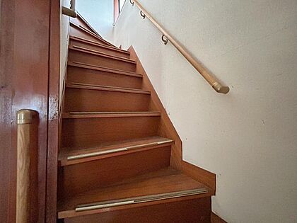 【リフォーム中写真10/26更新】階段です。手すりが付いているので、小さなお子様もご年配の方も安心して昇り降りできます。こちらの手すりは交換します。