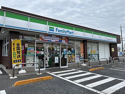 【周辺環境】ファミリーマート伊勢崎上諏訪店様まで約500m(徒歩7分)。24時間営業なので、何か買い忘れがあったときでもすぐに買いに行けますね。