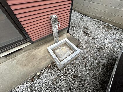 【リフォーム中写真10/26撮影】この住宅には外水道があります。家に入る前に手を洗ったり、洗車時にも便利ですね。お子様の水遊びにも使えそうです。駐車の邪魔にならないよう、位置を移動します。