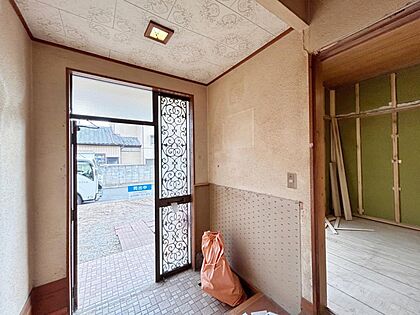 【リフォーム中写真10/26撮影】玄関ドアは新品に交換する予定です。鍵も新しくなるので、安心してご入居いただけます。玄関には屋根もあるので、雨の日でも濡れずに鍵の開け閉めができますよ。