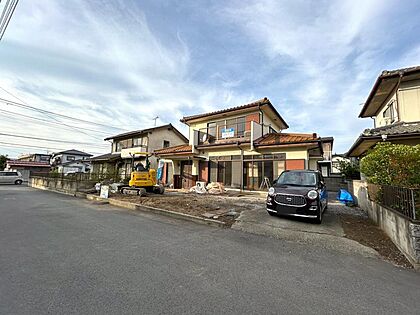 【リフォーム中写真10/26撮影】外観別角度から。お庭の岩は撤去し、駐車場拡張工事を行う予定です。並列3台駐車可能です。