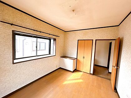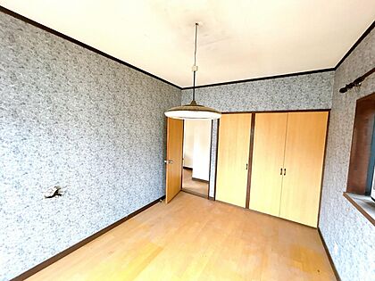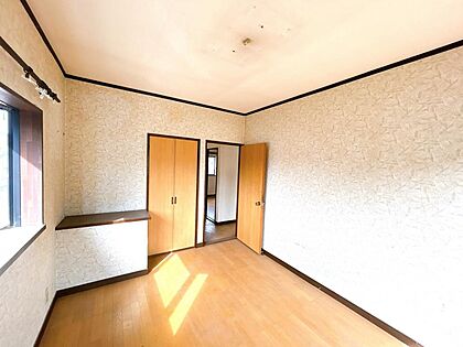 【リフォーム中】2階南西側の洋室です。フローリング重張、クロス張替、クロス仕上げ、建具・収納・照明交換を行います。