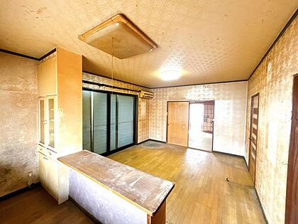 【リフォーム中】1階リビングの別角度です。フローリング重張、クロス張替、クロス仕上げ、建具・照明交換、クリーニングを行います。
