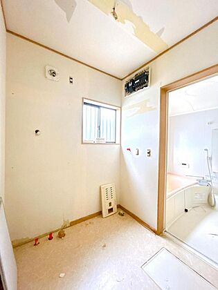 【リフォーム中10/27撮影】洗面室のお写真です。洗面化粧台を新設いたします。他にもクロス張り替えや照明器具の交換をいたします。