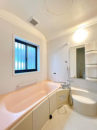 浴室のお写真になります。1坪サイズの浴室ですのでお子様と一緒にお入りいただけますね。