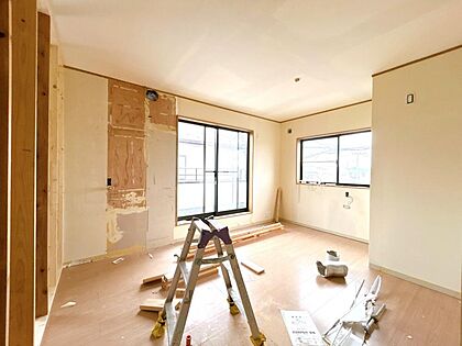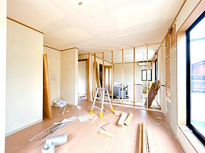 【リフォーム中10/27撮影】1階リビングの別角度のお写真です。約15帖のLDKになりますので、ご家族でゆったりとした時間をお過ごしいただけますね。