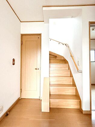 【リフォーム中10/27撮影】階段と1階廊下のお写真です。玄関上がってすぐに階段があると、お子様も楽でいいですね。