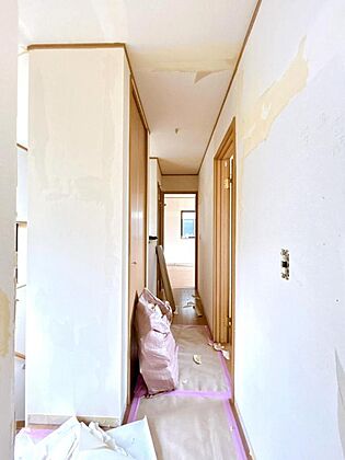 【リフォーム中10/12撮影】2階廊下のお写真です。クロスの張り替えや床の一部補修工事を行います。