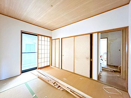 【リフォーム中10/27撮影】1階和室の別角度のお写真になります。襖(ふすま)は新品に交換いたします。