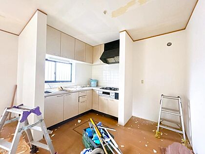 【リフォーム中10/27撮影】1階キッチンのお写真です。L字型ですと、料理中も広い可動域がとれますので、動きやすくていいですね。