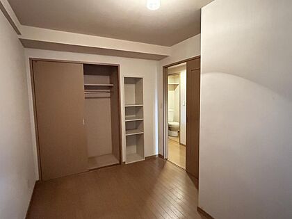 【約5帖洋室別角度】収納スペースに収納棚が備え付けております。