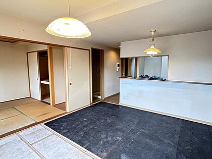 【LDK】床フローリング張替え、天井壁クロス張替え、照明器具交換します。南向きの明るい空間です。