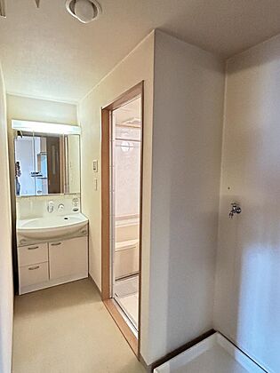 【洗面脱衣室】洗面化粧台は新品交換予定です。洗面脱衣室は、リフォームで拡張予定です。
