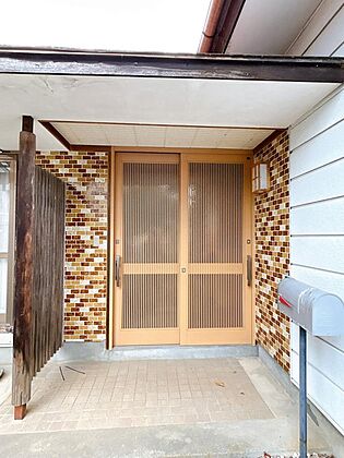 【玄関・外観 リフォーム予定】玄関はカギ交換、モニター付きインターホンや照明の交換を行いますので、防犯面でもご安心いただけます。木部は塗装し、タイル部分もリフォーム予定で、見た目もスタイリッシュに。