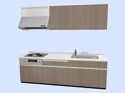 【同仕様写真】システムキッチンは新品に交換します。引出しには一升瓶や寸胴鍋など背の高いものも収納できます。レンジフードは照明がついているので、手元が明るくお料理できます。