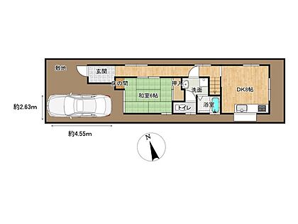 【リフォーム中】区画図 駐車場は間口約2.63m、奥行約4.55mの寸法です。