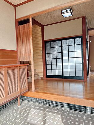 【リフォーム中】約3帖の広い玄関です。天井壁のクロス張替え照明交換行います。