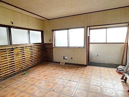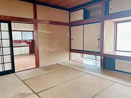 【リフォーム中】ダイニングキッチン横の8畳和室です。リビングとしてお使いいただけるよう、床をフローリングの張替、天井壁のクロス張替えを予定しています。