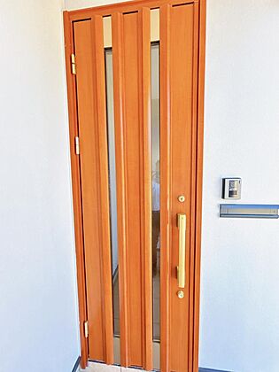 【リフォーム後/玄関外観】玄関外観写真になります。鍵交換、照明交換等行いました。