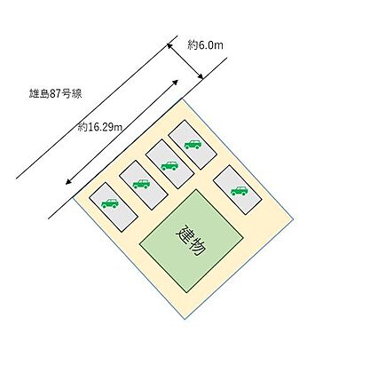 【区画図】駐車は計5台可能です。前面道路は幅員約6.0mございます。