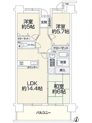 専有面積 68.57m2(20.74坪)・3LDKです。