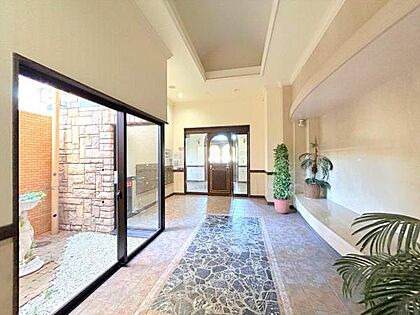 建物入口 タイルと石の乱貼りのお洒落なエントランスです。